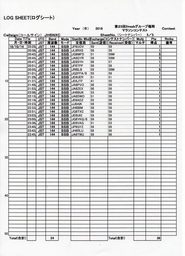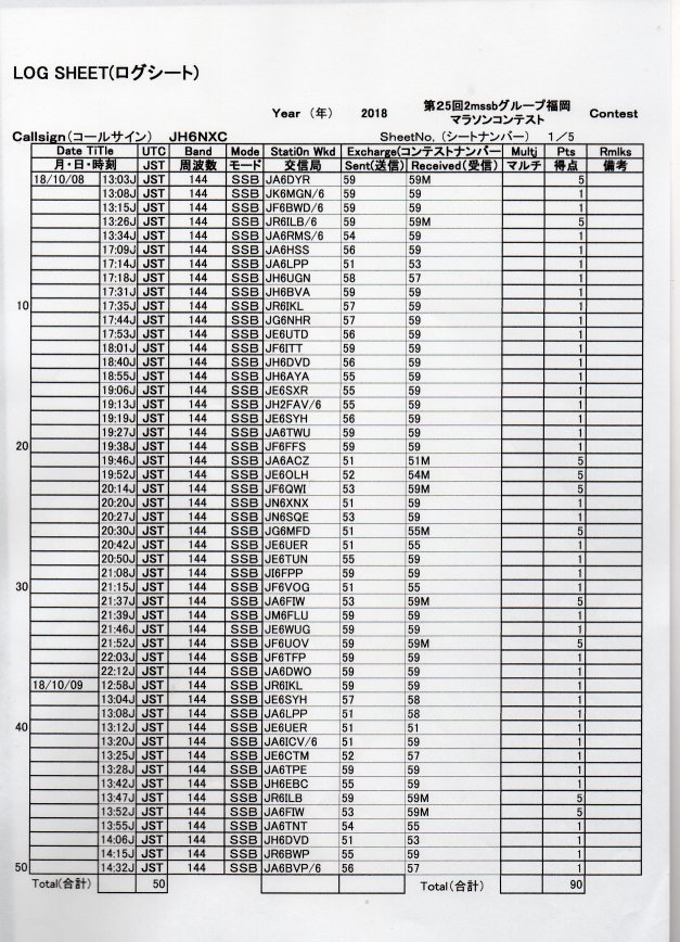 ○ 2018 2mssb福岡マラソンコンテスト交信局リスト 2018.10.8−14