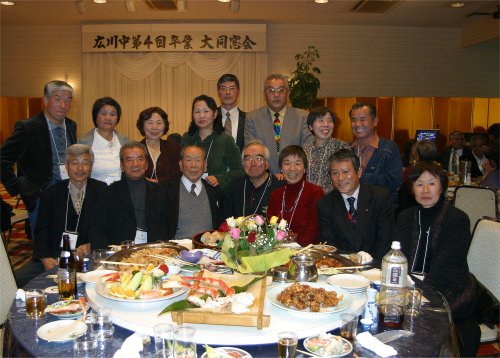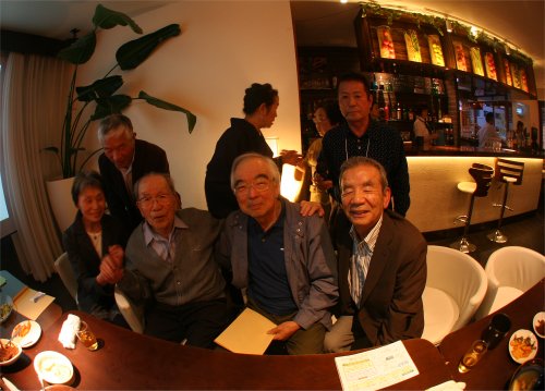 全員の記念写真の撮影も終わり、90歳を超えられた恩師の元気なご挨拶と乾杯の後、前回の同窓会の宴会の状況の画像がスライドショーで壁面投影された雰囲気の中で、 いよいよお待ちかねの懇親会となった。懇親会も終わり、次の2次会の会場へ移動。