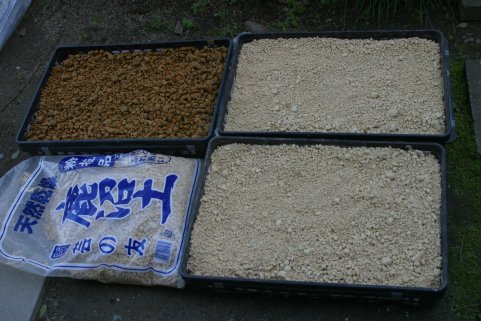 実生発芽 (H20.5.27撮影)・・・ボラ土小粒100%使 用、サルスベリも同時発芽