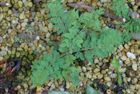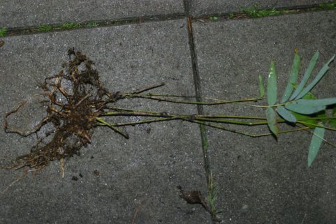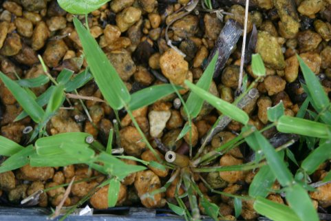 実、実生育苗中のナンテン(春蒔き、早秋発芽、1年目)