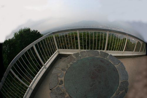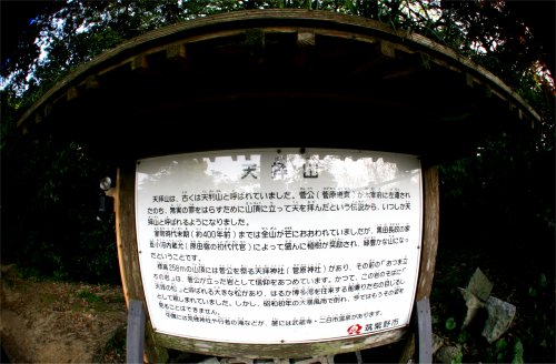 山頂の天拝山神社 天拝山説明板 天拝山258m 山頂展望台から眼下に二日市温泉を望む