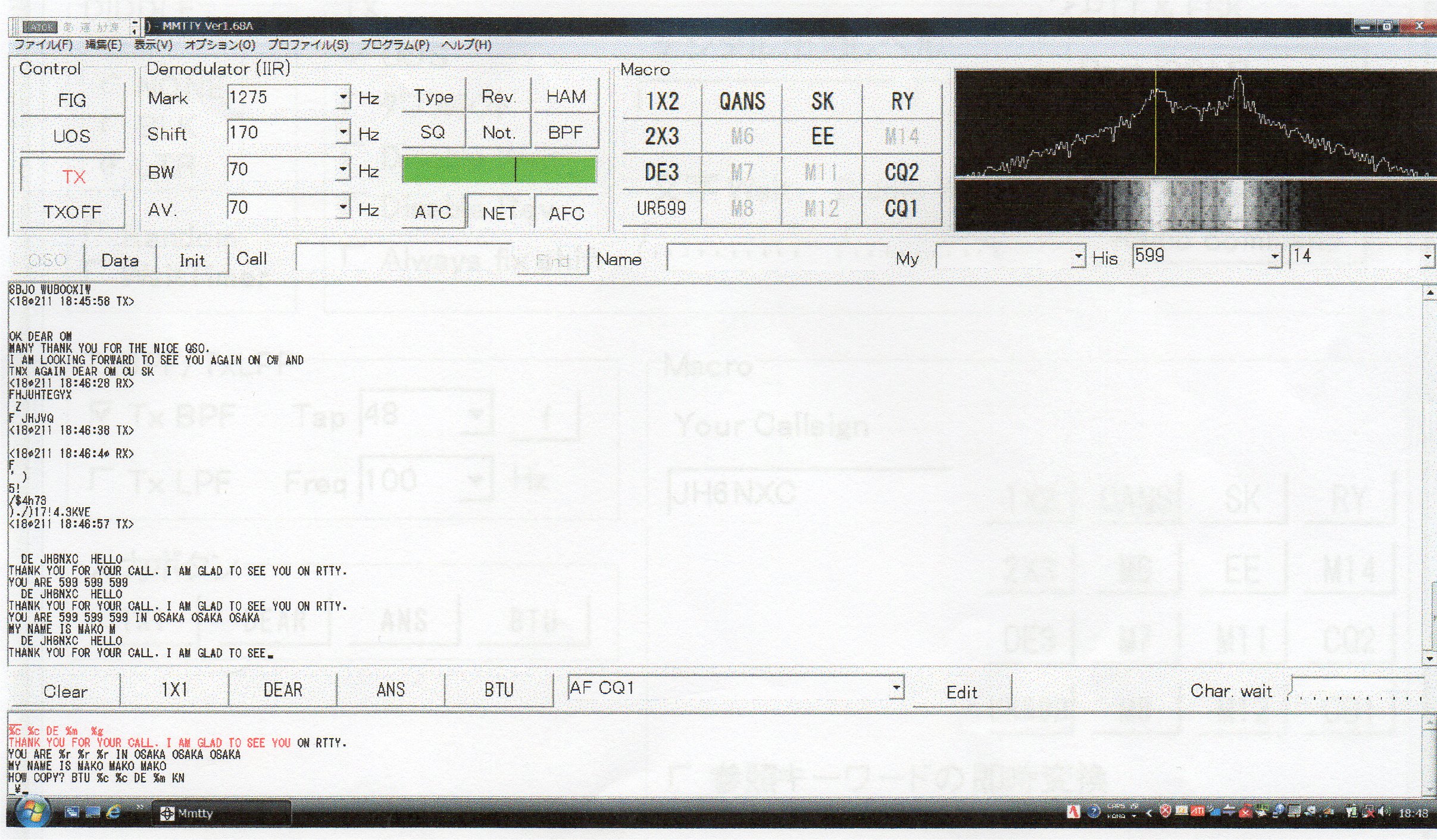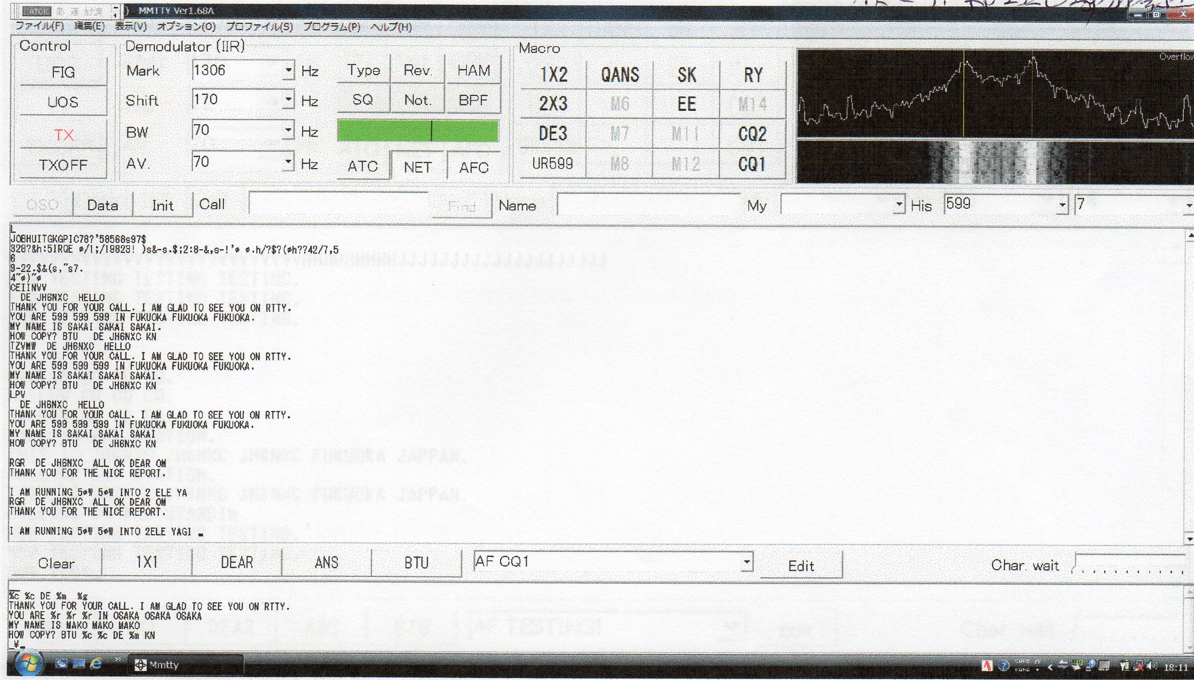 2018.2.11 MMTTY交信テスト成功時のdemodulator・AFC/ATC/PLL・デコード・