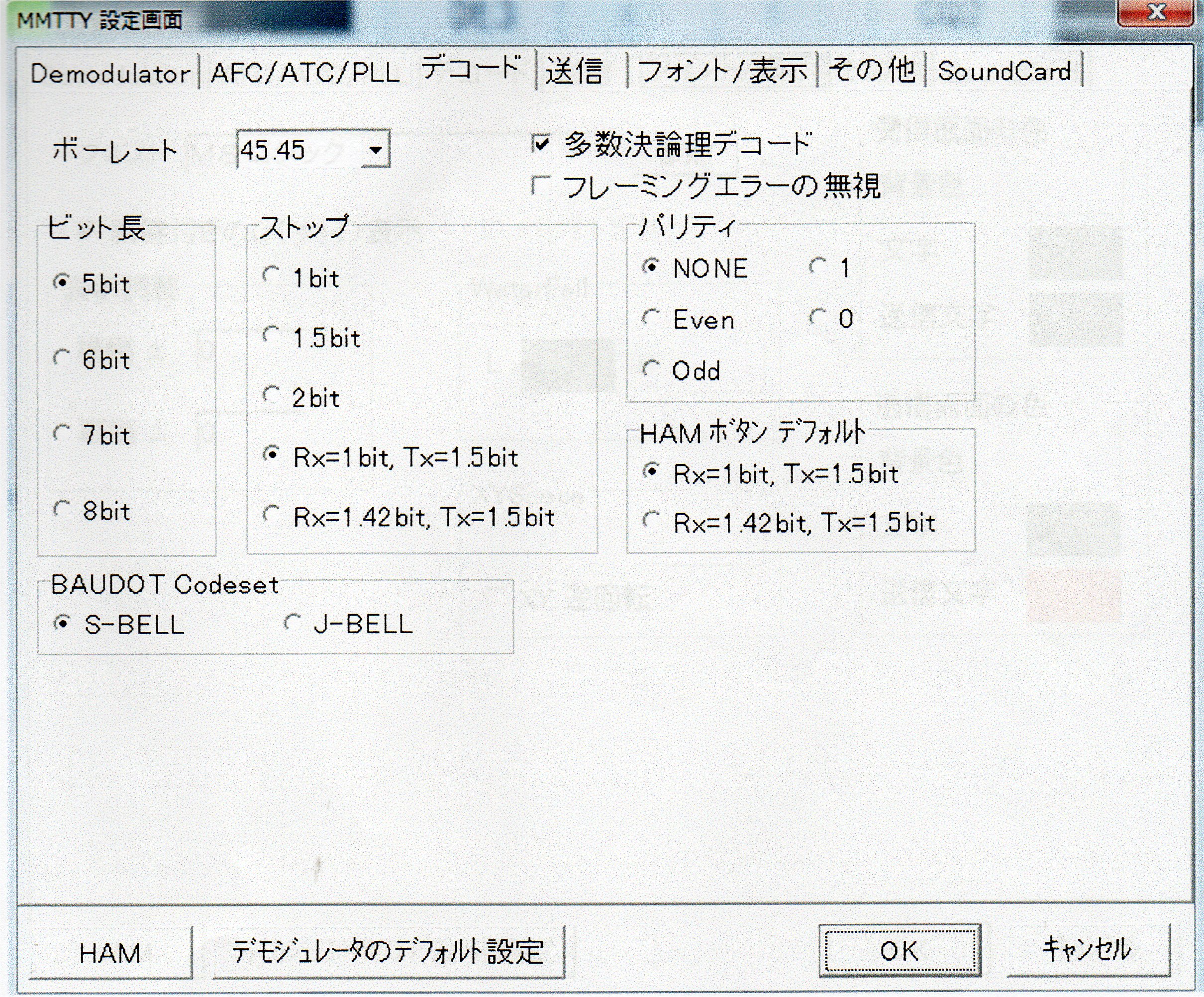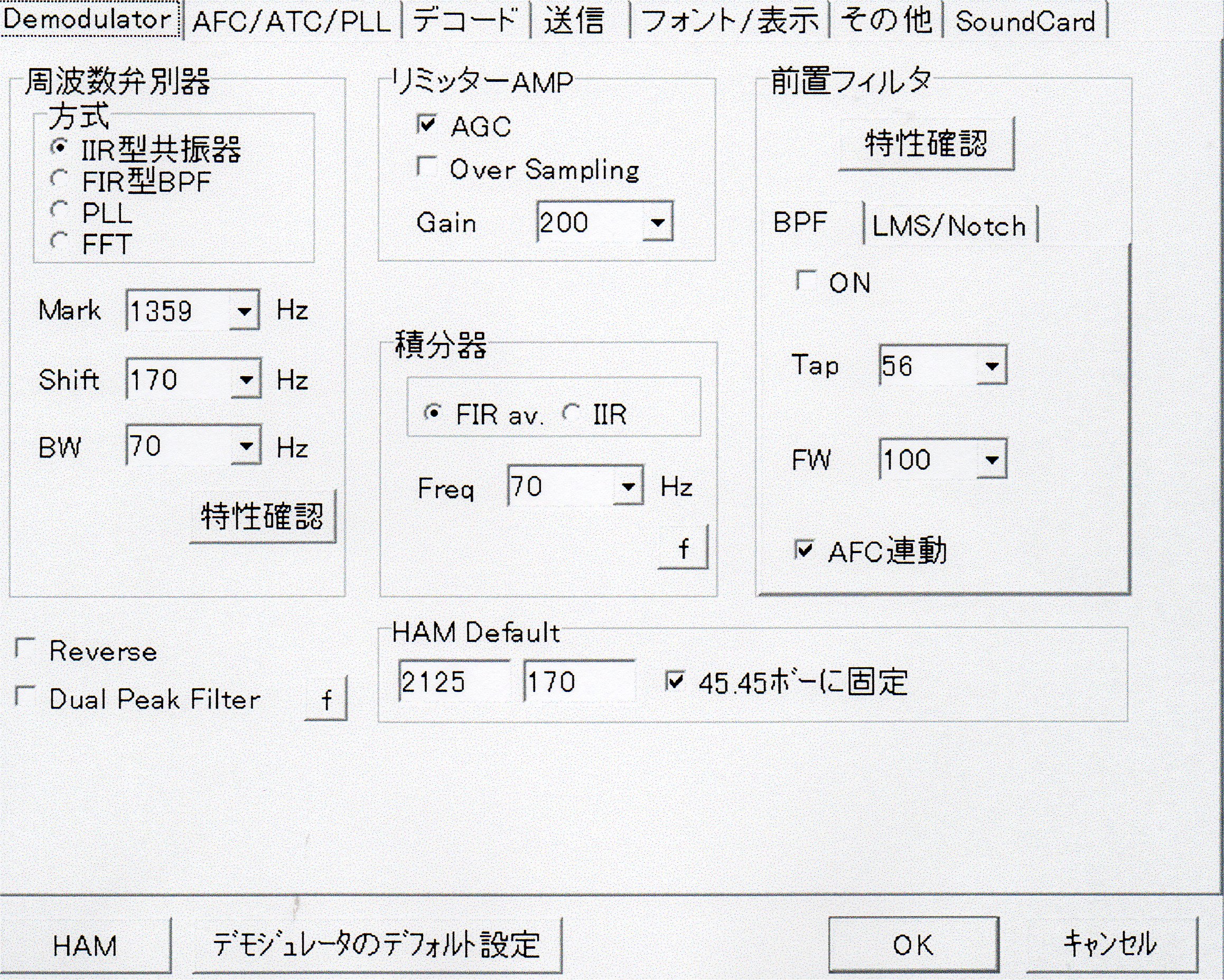 TS2000 > VAIO MMTTY Demodulator 設定画面
