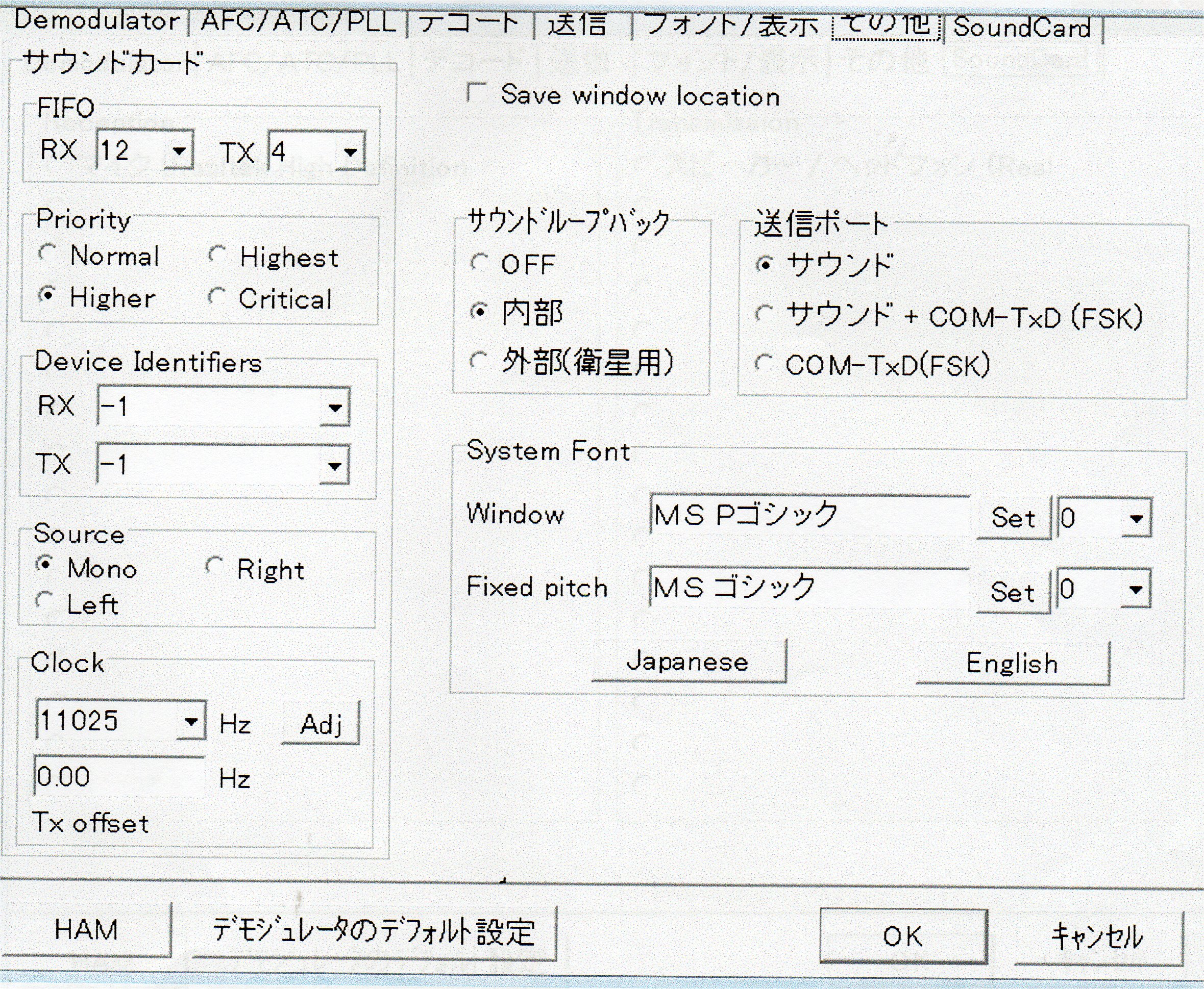 TS2000 > VAIO MMTTY SoundCard 設定画面